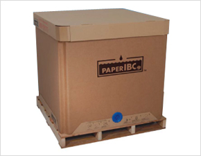 Eco-friendly packaging IBC made from high strength paper and safely loads 1000 liters of non-hazardous liquid cargo.